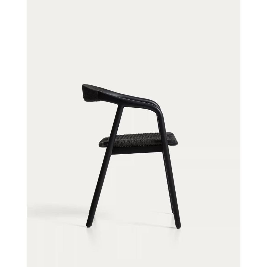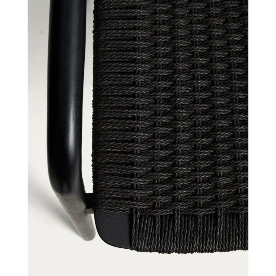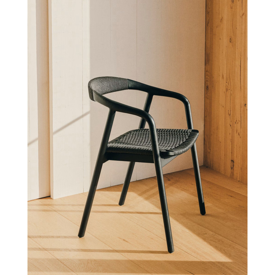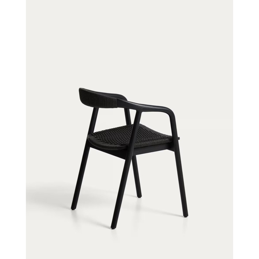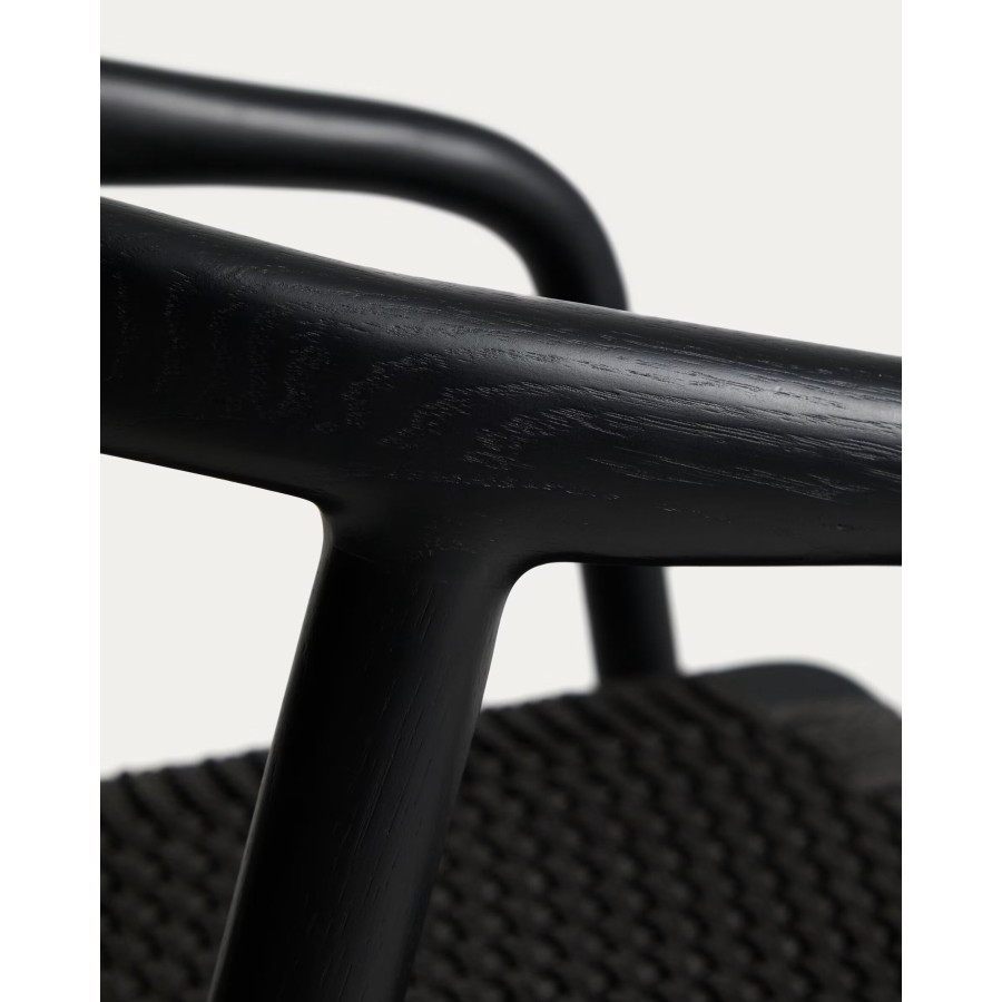 Cadeira Derile de madeira maciça de carvalho com acabamento preto e corda de papel preta FSC 100%.