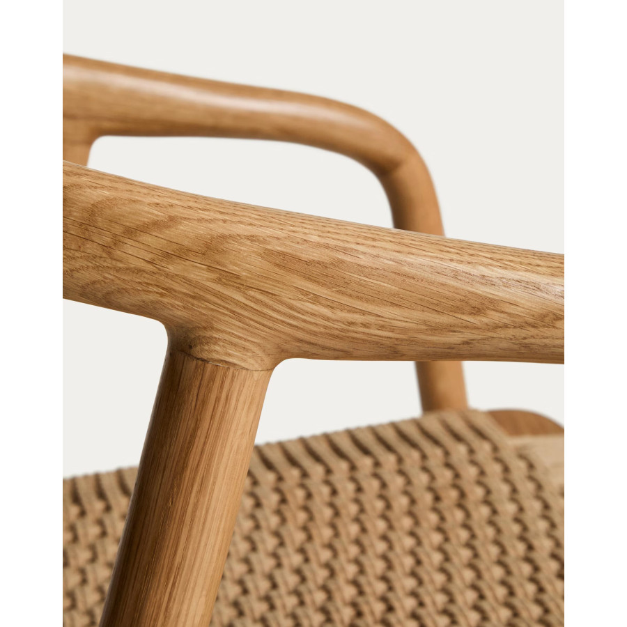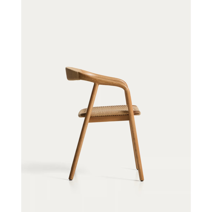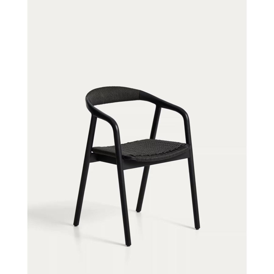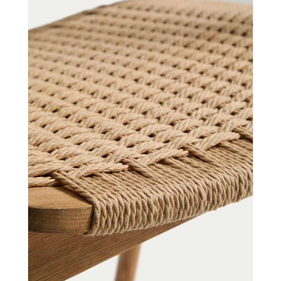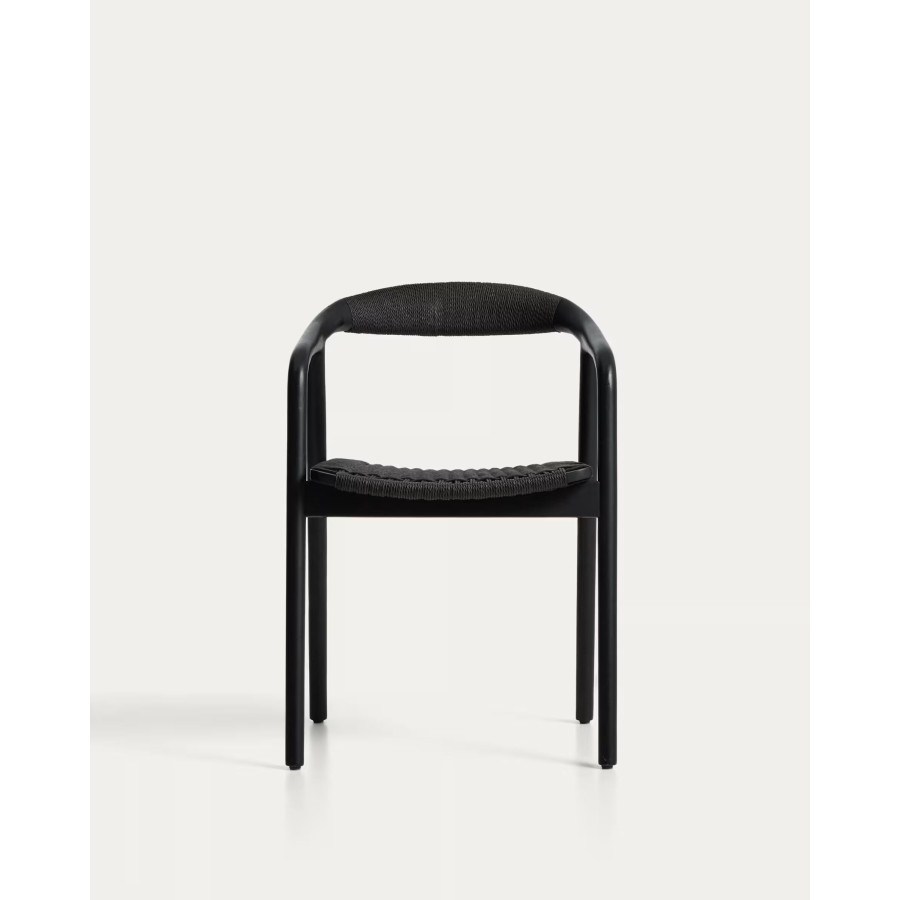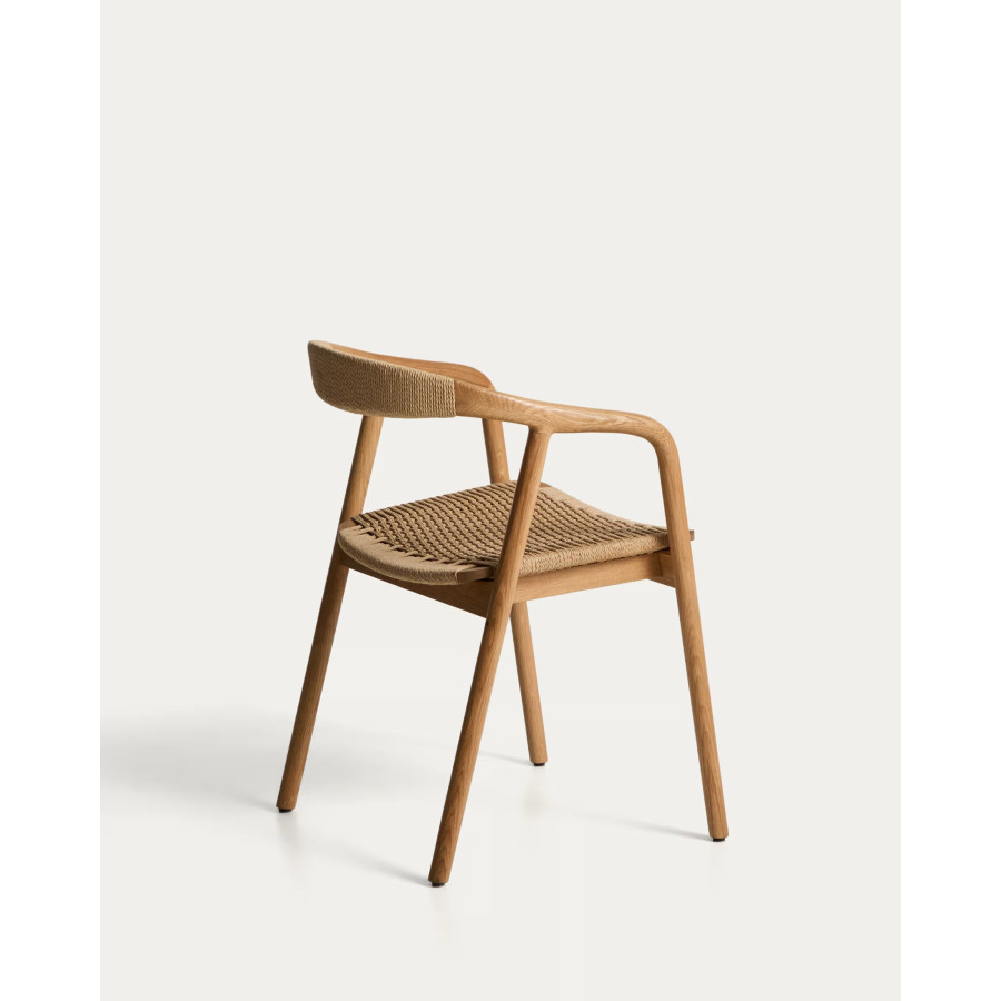 Cadeira Derile de madeira maciça de carvalho com acabamento preto e corda de papel preta FSC 100%.