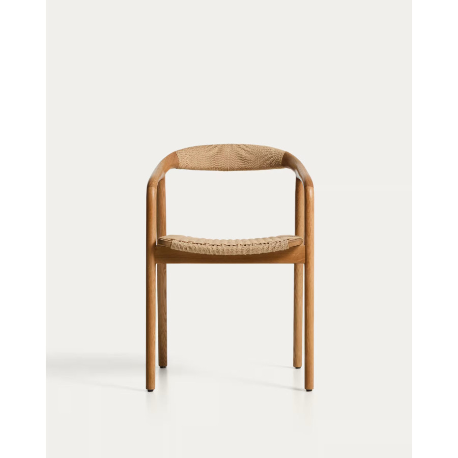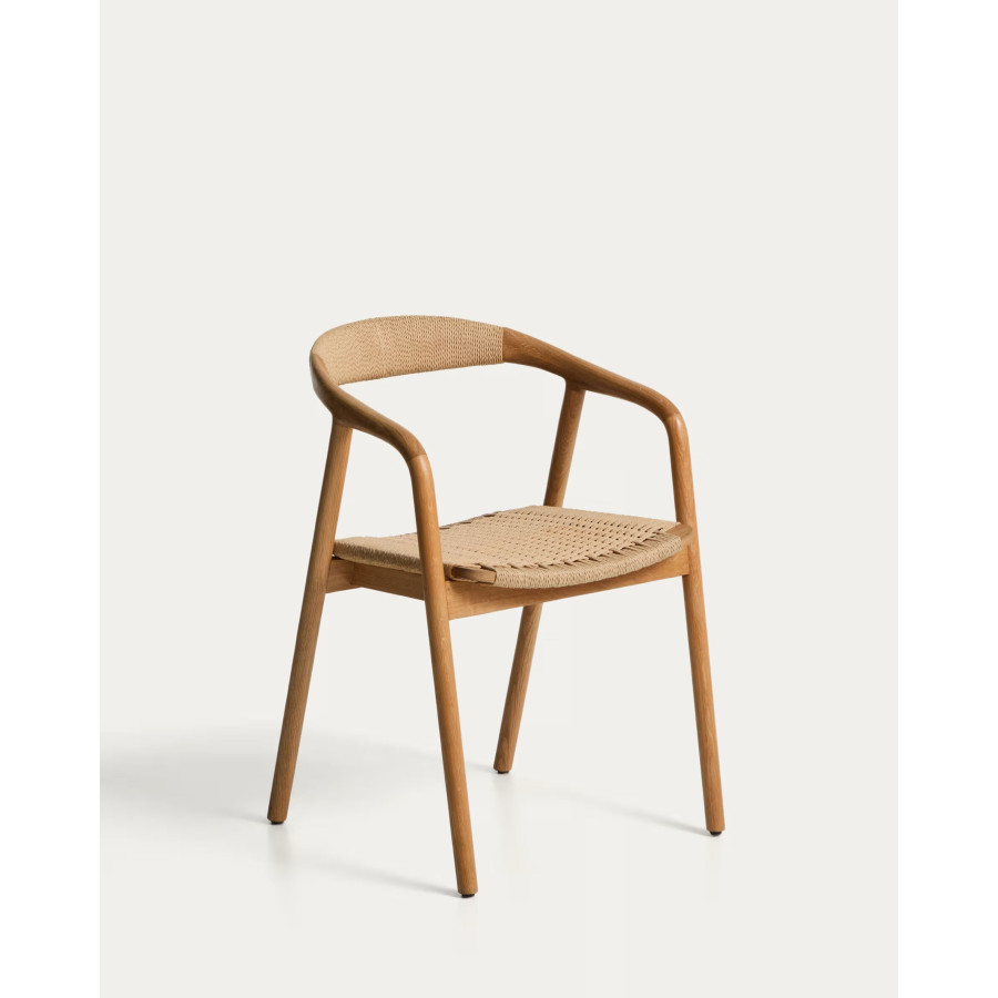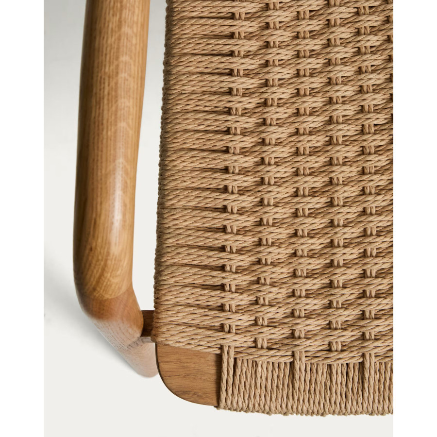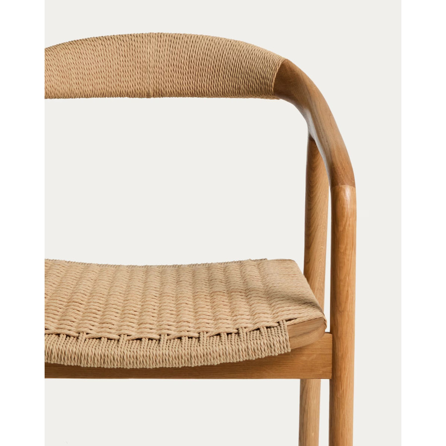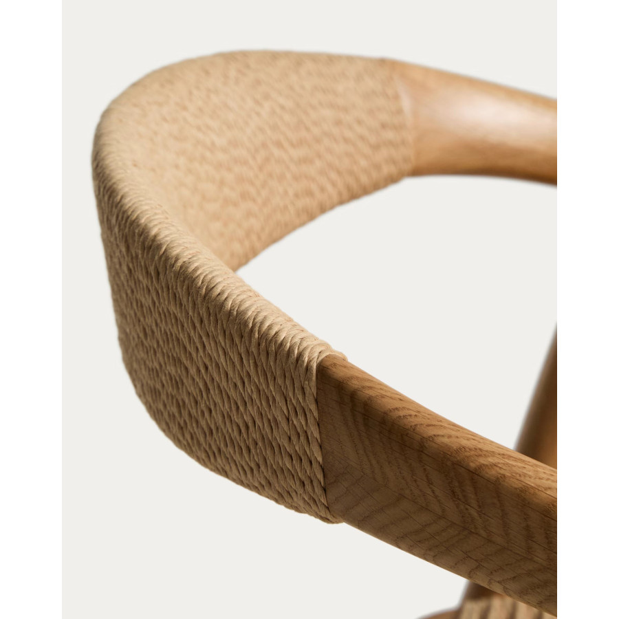 Cadeira Derile de madeira maciça de carvalho com acabamento preto e corda de papel preta FSC 100%.